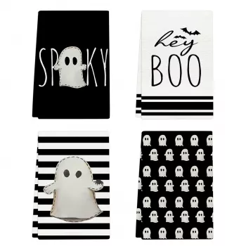 Spooky Black Ghost Halloween Kitchen Towels – Set of 4