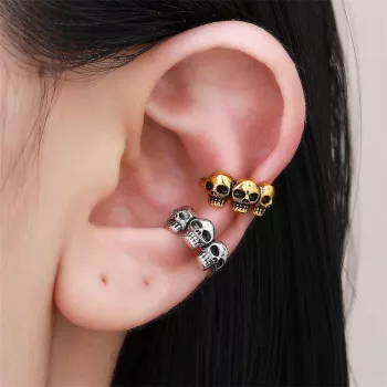Gothic Skull Ear Cartilage Clip-On Earrings for Punk & Halloween