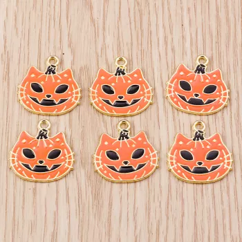 10-Piece Cartoon Enamel Pumpkin Cat Charms – Perfect for DIY Jewelry